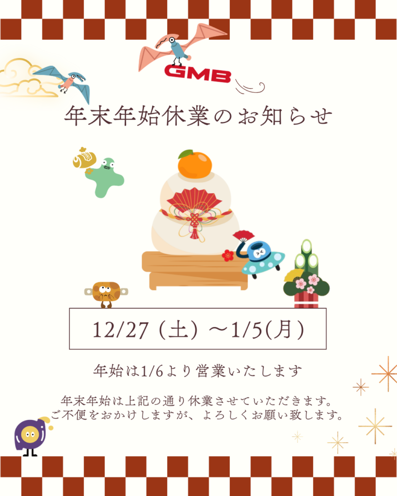 平素は格別のお引き立てを賜り、厚く御礼申し上げます。誠に勝手ながら、弊社の年末年始休暇を下記の通りとさせて頂きます。ご迷惑をおかけ致しますが、何卒、ご了承頂きます様お願い申し上げます。【期間】2025年12月27日(土)~2026年1月5日(月) 10日間本年もご愛顧いただき、心より感謝申し上げますとともに、皆様のご多幸をお祈り申し上げます。